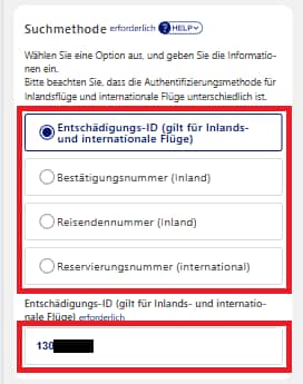 Klicken Sie hier, um Informationen darüber zu erhalten, wie Sie die Nummer Ihres Entschädigungsantrags, die Bestätigungsnummer, die Passagiernummer und die Reservierungsnummer finden.