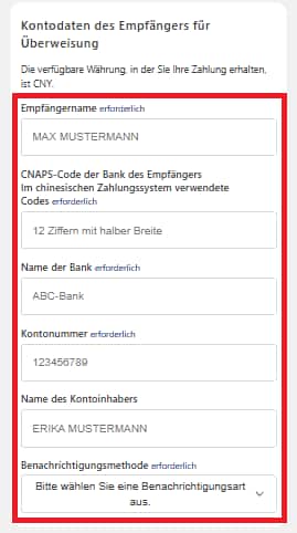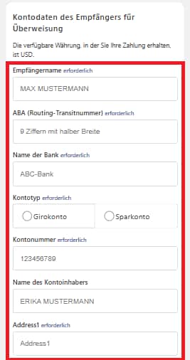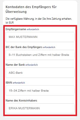 Geben Sie die erforderlichen Zahlungsdaten ein.