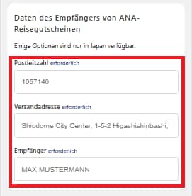 Geben Sie bitte Ihre Adresse ein, an die der Reisegutschein gesendet werden soll.