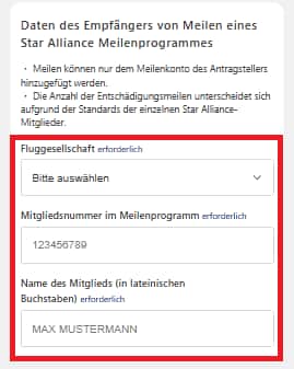 Geben Sie die Mitgliedsnummer Ihrer bevorzugten Fluggesellschaft ein.