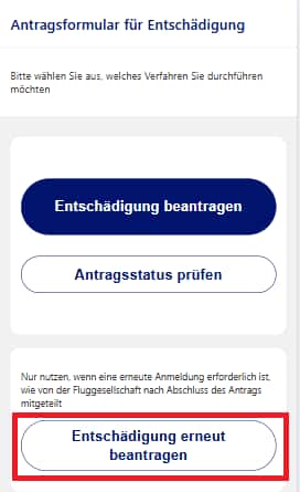 Klicken Sie auf „Entschädigung erneut beantragen“ und befolgen Sie die Schritte zum Beantragen einer Entschädigung ab SCHRITT 3.