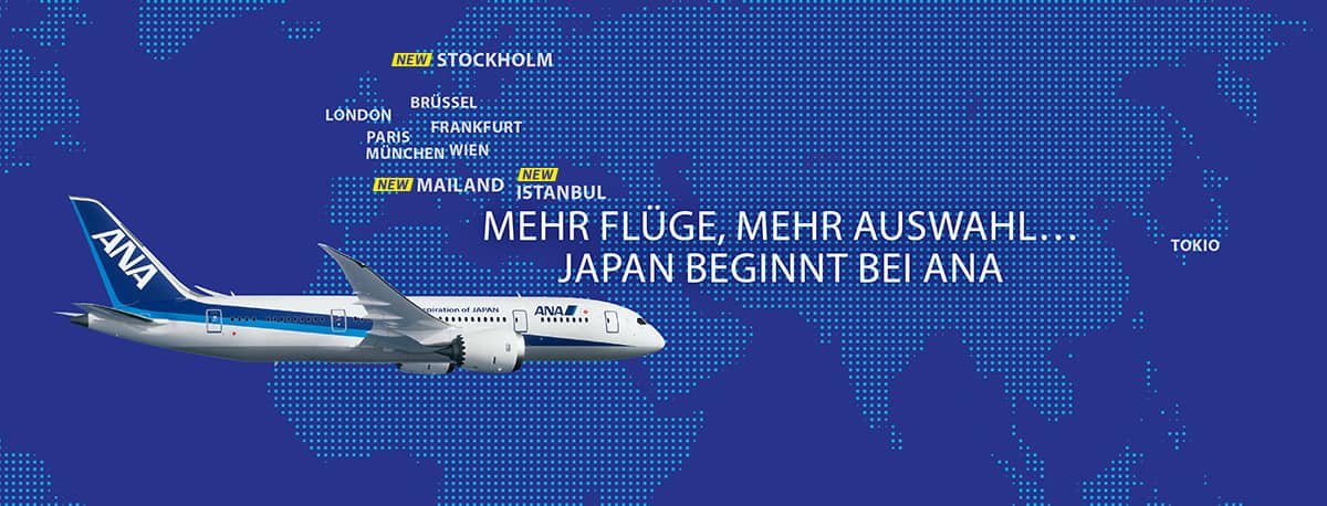 Mit dem erweiterten Netzwerk von ANA haben Sie jetzt noch mehr Möglichkeiten, aus ganz Europa nach Japan zu fliegen.