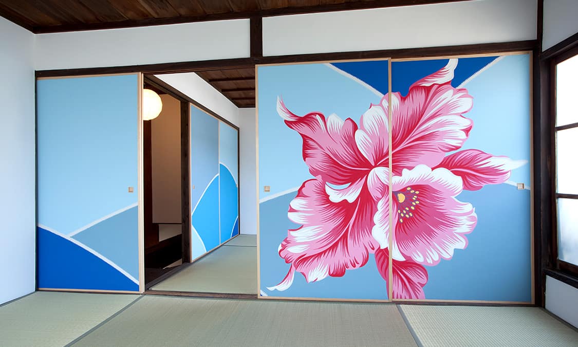 Using traditional Taiwanese textile patterns, such as florals, the contemporary artist, Michael Lin, creates paintings that show an awareness of the characteristics of the space and the building. This piece, which was entered in the Beppu Contemporary Art Festival 2009 “Mixed Bathing World,” has remained on display to the general public, even after the festival ended.