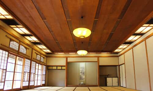 The former Ryotei Kaneyu was founded by the first Yusuke Kaneya as a rental hall for social gatherings. Constructed using plenty of Akita cedar, it was renowned as one of the best ryotei in the prefecture and was widely used for various dinner parties, receptions and weddings. The current building was built in 1937 by the second Yusuke Kaneya. Instead of lavishly using Akita cedars, the current building uses only carefully selected wood, and there is only one Shiho-masa (highest-quality pillar with four wooden sides of all straight grain) in the building, which suggests that the material was sawn without waste. The restaurant was registered as a National Registered Tangible Cultural Property in 1998, but later closed in 2008 and was donated to Noshiro City the following year.