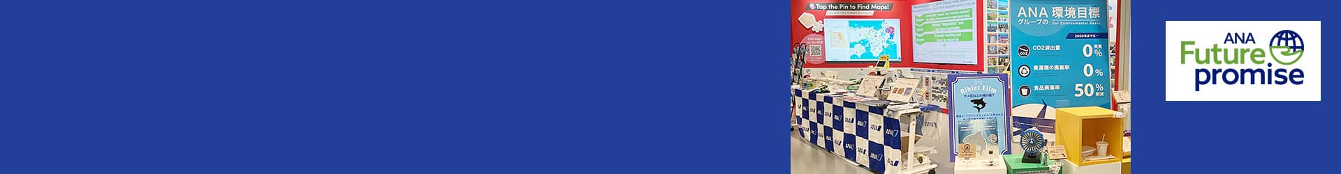 At the booth, the environmental measures implemented by the ANA Group for the creation of a sustainable society were introduced through exhibits and videos, including the following.