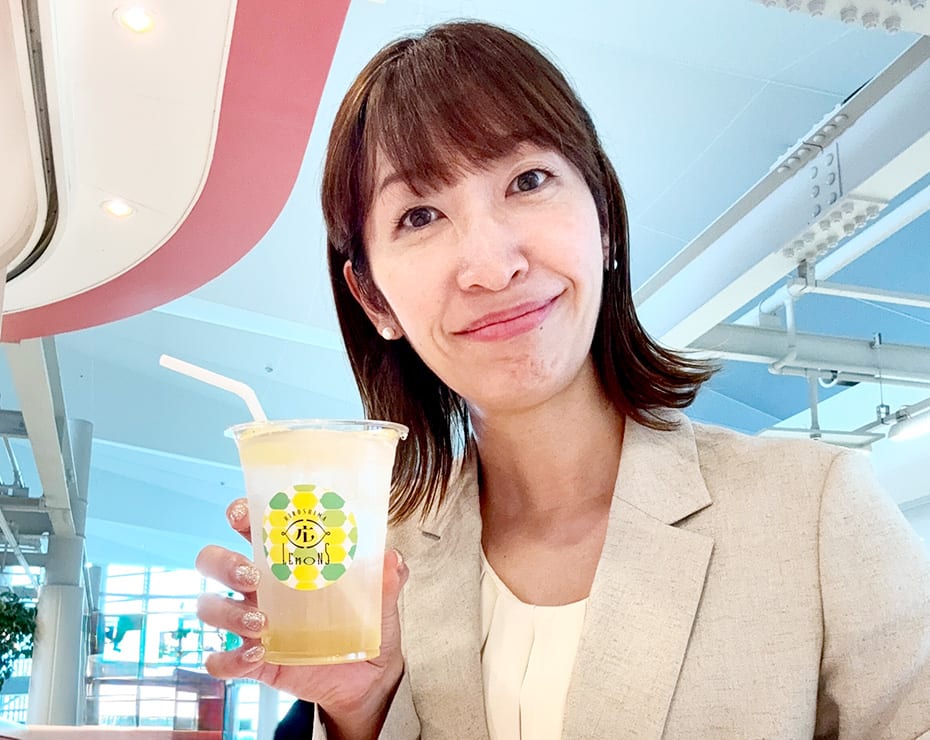 Furthermore, we hoped to offer drinks made with this lemon syrup at the gateway for travelers that is Hiroshima Airport. Thanks to a valuable introduction, we arranged for them to be served at the Airport Plaza Cafe. Through repeated trial and error in developing menus and preparing staff manuals in cooperation with our partner Hiramoto Shoten, we finally succeeded in bringing the product to customers.