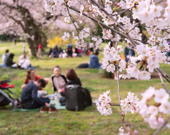 Celebrating the arrival of spring by bringing and drinking alcoholic beverages together under the full bloom of cherry blossoms is a unique Japanese custom. Friendly conversations flow in the warm spring sun, and you can even enjoy the night view of the cherry blossoms as many sites light up the flowers in the evening.