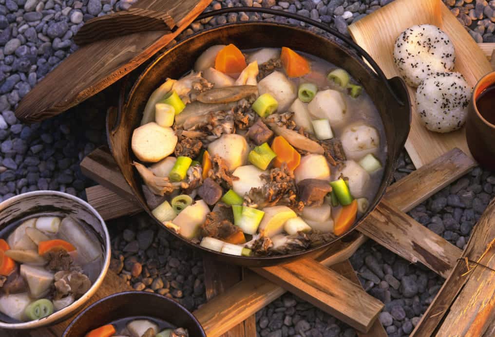 "Imoni," or taro potato stew, is a local cuisine in the Tohoku region. During the taro potato harvest season in autumn, families and friends gather by the river with pots and ingredients and enjoy a potato stew party, or "imoni-kai." Flavored with soy sauce or miso seasoning, the stew pairs wonderfully with any kind of liquor. There are various imoni-kai open to tourists as well, such as the Best Imoni-kai in Japan Festival, which offers around 30,000 servings of the tasty stew.