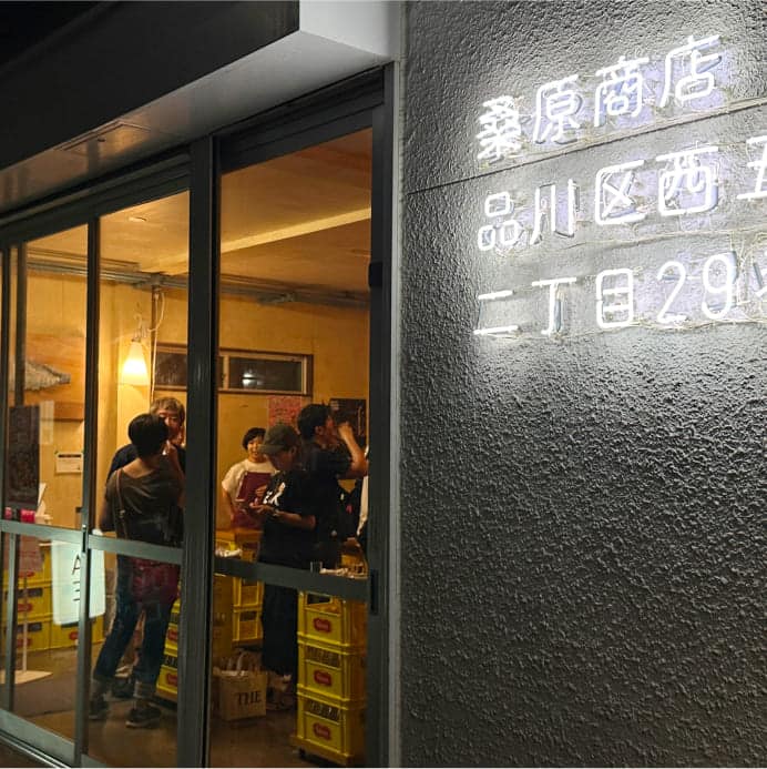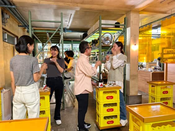 Kuwabara Shoten in Gotanda, Tokyo, lets you try out different types of sake in a traditional "kaku-uchi" serving style in the liquor store's warehouse that has been transformed into a modern sleek space. Over 200 types of sake are stored in a refrigerator in the back of the store, and 40 labels are featured on the sake-of-the-day menu, all of which can be enjoyed from as little as 30 milliliters. Snacks and delicacies from all over Japan are carefully selected by the owner. Encountering casually with sake enthusiasts is an ideal way to discover new flavors.