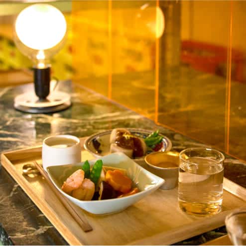The bar's recommendation is the craft gin produced by a distillery in Kyoto. Using high-quality rice spirit infused with aromas of locally sourced "sansho" pepper, "yuzu" citron and "gyokuro" green tea, the craft gin has garnered many prestigious awards around the world. Crafthouse Kyoto also offers an extensive lineup of craft beers. Having good drinks at a cozy "machiya" counter will surely keep the conversation flowing.