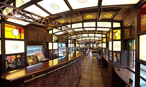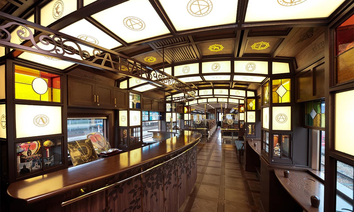 Named after the famous jazz tune and also taking the first letter of the beautiful Amakusa area, the Limited Express A-train runs between Kumamoto City and Misumi, the entryway to the Amakusa Islands. The train is elegantly designed with a wooden interior and stained glass windows reminiscent of Western culture introduced to the area during the 16th century. Sit back and relax in the retro bar with specialty dekopon citrus highball as jazz music plays in the background in a train journey for adults.