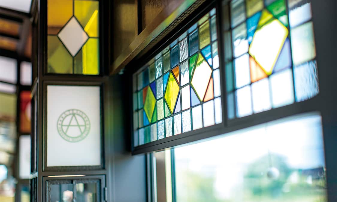 Retro stained glass windows and the sound of jazz make a train journey like a scene in a movie