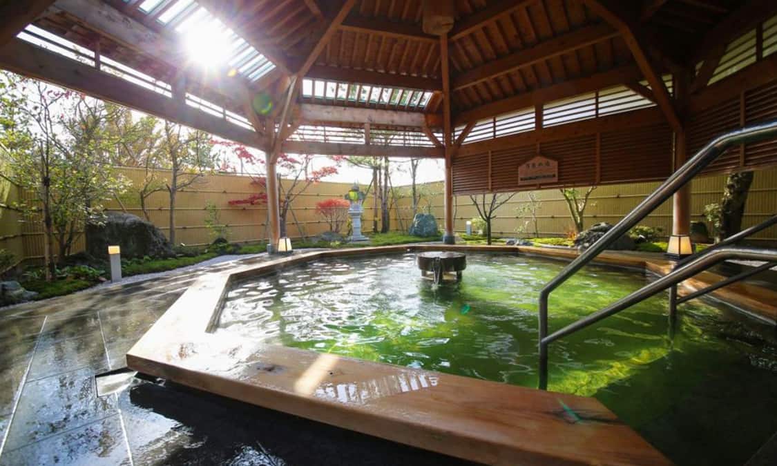 Opened in 1915, Tsukioka Onsen in Shibata City, Niigata Prefecture, boasts a hot spring with one of the highest sulfur concentrations in Japan. The rare, stunning emerald green sulfurous spring is called "the hot spring to make you even more beautiful," and is popular especially among women. The slightly alkaline water is mild on the skin, leaving it feeling moist for a long period of time after bathing.