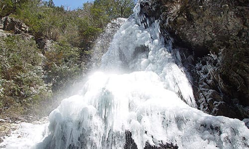 Located in the mountains in western Nara Prefecture, Mifune Waterfall is roughly 50 meters high with the waters tumbling in two tiers. The scenery is beautiful in the spring to early summer with fresh greenery, as well as in autumn as the waters fall amid the vibrant foliage. However, the most impressive scenery is during the harsh cold period of winter when the entire waterfall freezes into a spectacular ice waterfall. Enjoy trekking along the natural phenomenon, a rare opportunity in the relatively warm Kansai region.