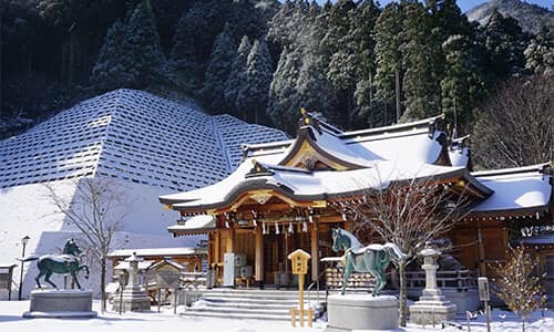 Believed to enshrine the dragon Takaokami-no-Okami, the Niukawakami Kamisha (Upper Shrine) was constructed around 675 in the village of Kawakami where Mifune Waterfall is located. The dragon is a deity that controls water and rain, and has been the object of worship when praying for or stopping rain by countless people from ancient times, including the imperial courts and leaders of the country. The Niukawakami Nakasha (Middle Shrine) is located in Higashiyoshino Village, and Niukawakami Shimosha (Lower Shrine) is situated in Shimoichi Town.