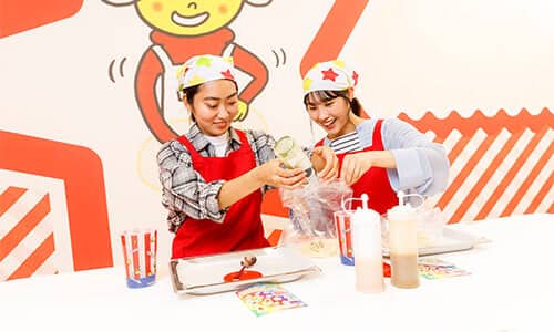 Make your own unique Baby Star Ramen in this hands-on activity area. Choose your favorite flavor from various seasonal flavors and complete your own Baby Star! It's even more fun if each person made a different flavor and shared and compared. Even small kids will get excited when they meet Hoshio-kun, the mascot of Baby Star Ramen. At any time, there are two to three activity programs to choose from and join in.