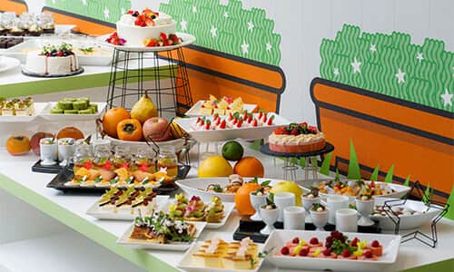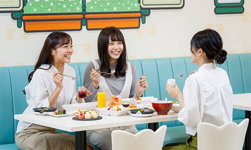 At Sweets Park, enjoy a delightful buffet of around 25 kinds of homemade sweets, as well as authentic food menus created by chefs. Menus that use Baby Star Ramen are also a must-try. After 15:00, the food area also offers an a la carte menu in addition to the buffet. Oyatsu Park is an interactive amusement area with nine types of action-filled attractions using digital technology. Attractions are based on a point system, so both children and adults can compete and play together!