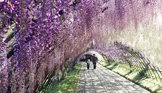 Visitors in late April to early May can enjoy one of Japan’s finest spots for wisteria. Two roughly 100-meter long wisteria tunnels create canopies of deep purples, soft lilacs, and pale whites. Don’t miss the wisteria dome or the lookout point that allows you to look over a sea of purple from above. Note: The garden is only open to the public in spring and autumn. Entrance tickets for designated days and times must be bought in advance.