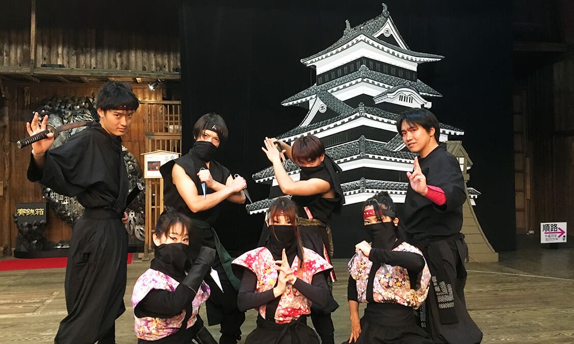 Kaho Theater ninja experience tour is an entertainment program available for a group of 30 people or more (2,000 yen per person). Participants can take photographs dressed in ninja costumes at a theater quintessential in the architectural style of a traditional kabuki theater. In addition to the dynamic ninja show by professional performers, you can also enjoy “Shuriken” star throwing as well as bow and arrow experiences.