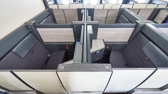 These wide seats all come with a door and boast direct aisle access, alternating between forward- and rear-facing rows to provide the highest level of privacy and comfort available in Business Class.