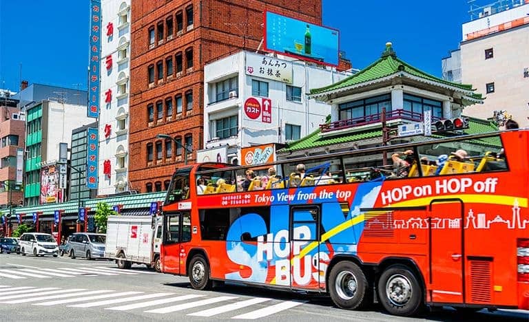 Unlimited hop-on-hop-off access to two different routes covering the most popular spots of Tokyo from an open double-decker bus, the best way to get a unique street-level view.