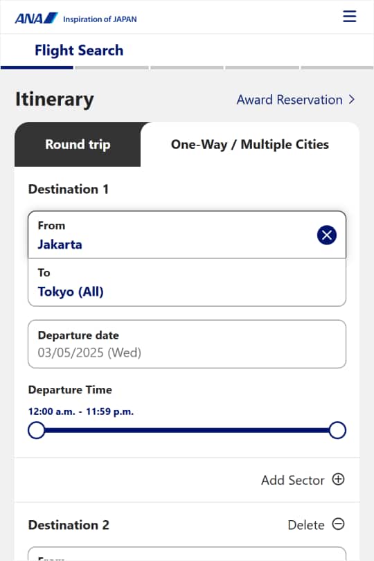 1. Head over to ANA website and click 'Search Multiple Cities'.