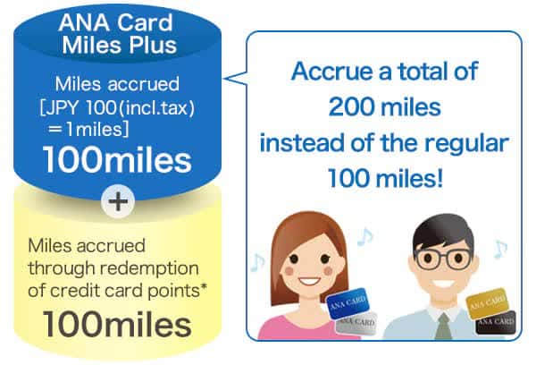 ANA Card Miles Plus enables customers to earn both credit card points and miles (1 mile for every JPY 100 or JPY 200 spent, including tax) on ANA Card purchases at ANA Card Miles Plus participating stores.