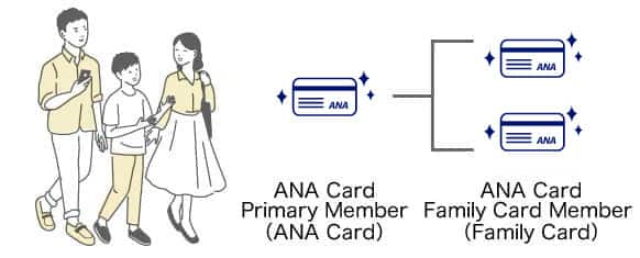 ANA Card family cards are linked to the credit card of the primary member. They can be issued to persons who are on registered to the primary member's family registry, including their spouse or same-sex partner, parents, and children (over the age of 18, excluding high school students).