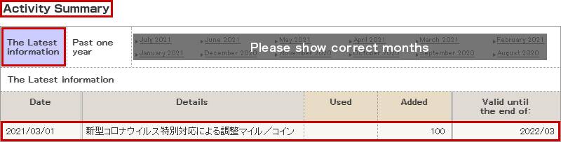 Even if you register, the miles and ANA SKY COINS will expire temporarily on their original expiration dates. However, you will then accrue the same amount of miles and ANA SKY COINS with a new expiration date of March 31, 2024 in the middle of the month following the month in which your miles and ANA SKY COINS expired.