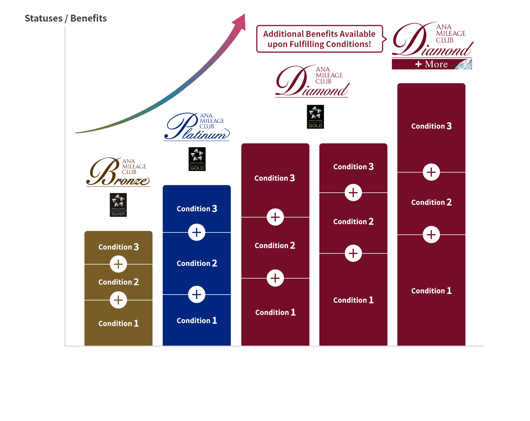 Members who often fly and members who often have the opportunity to use services in their everyday life can choose the conditions that best fit their lifestyle for attaining a status.