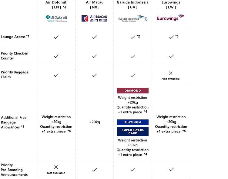 Depending on the operating carrier, it may be necessary to present your Super Flyers Lounge Card for other airport services.
