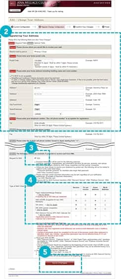 You can apply by clicking on "Delivery and Address Changes" in the ANA Mileage Club Members' Information Page on the ANA Website. |