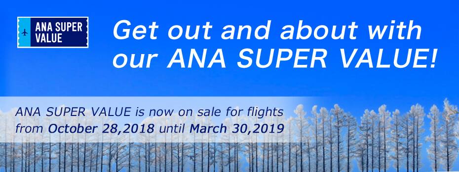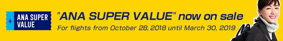 Depending on the route, the individual flight, and the time of year, "ANA SUPER VALUE" may not be available or the fare amount may differ. A limited number of seats are available for use on each flight.