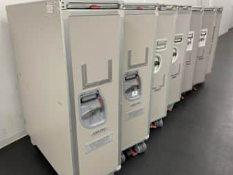 The cabin is equipped with a variety of items for use in aircraft operation and in-flight services. Electronization and lightweighting reduce the total weight of the aircraft and reduce CO₂ emissions.