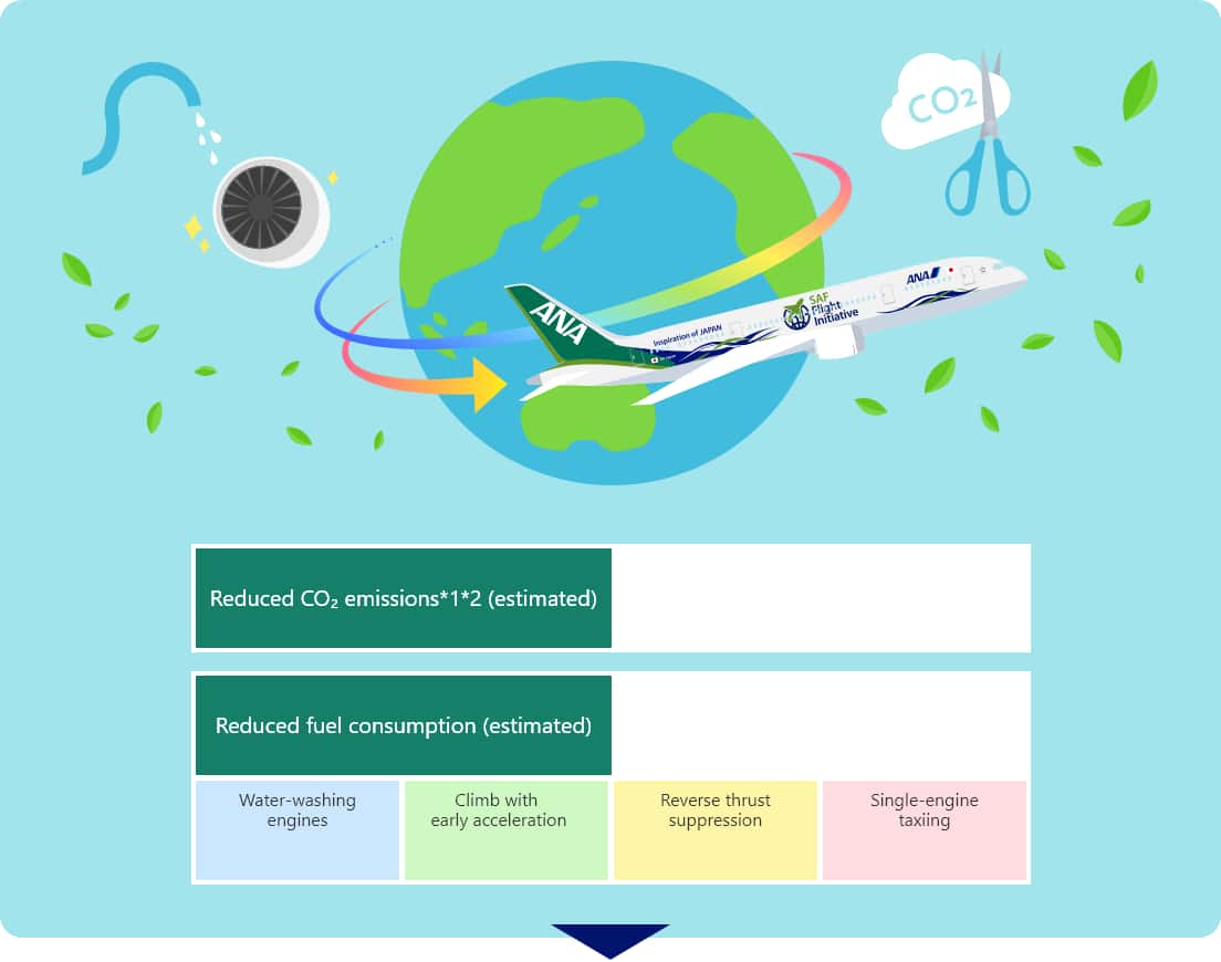 ANA is implementing various operational measures to reduce CO₂ emissions from aircraft.
