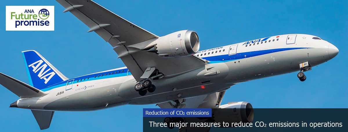 We will introduce three major measures that ANA has taken over the years to reduce CO₂ emissions from flight operations.