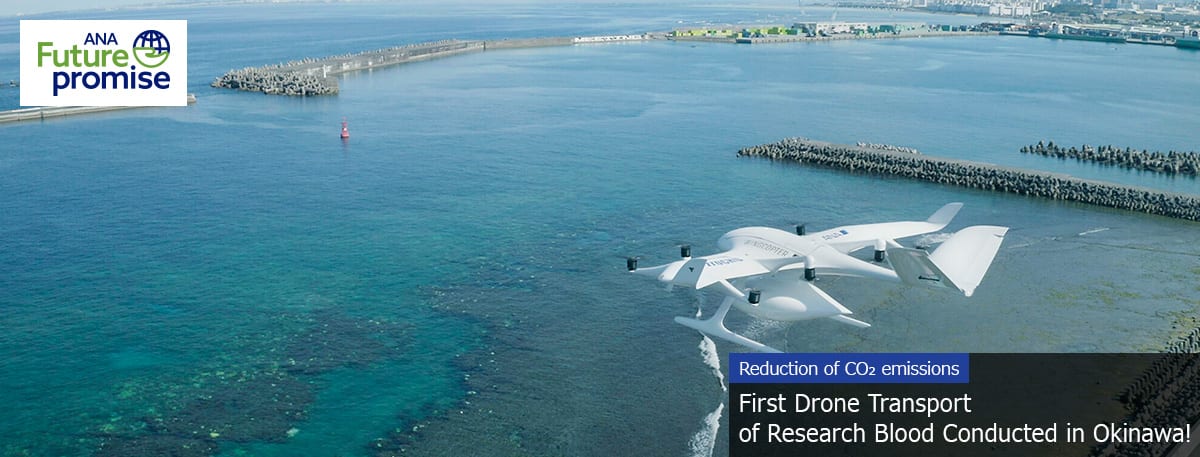 Leveraging its expertise in safe aircraft operation, the ANA Group has been developing a drone-based community contribution project since 2016. As part of this initiative, the Drone Business Team at ANA Holdings Inc. successfully conducted the first-ever drone transport of research-use blood in Okinawa, Japan.