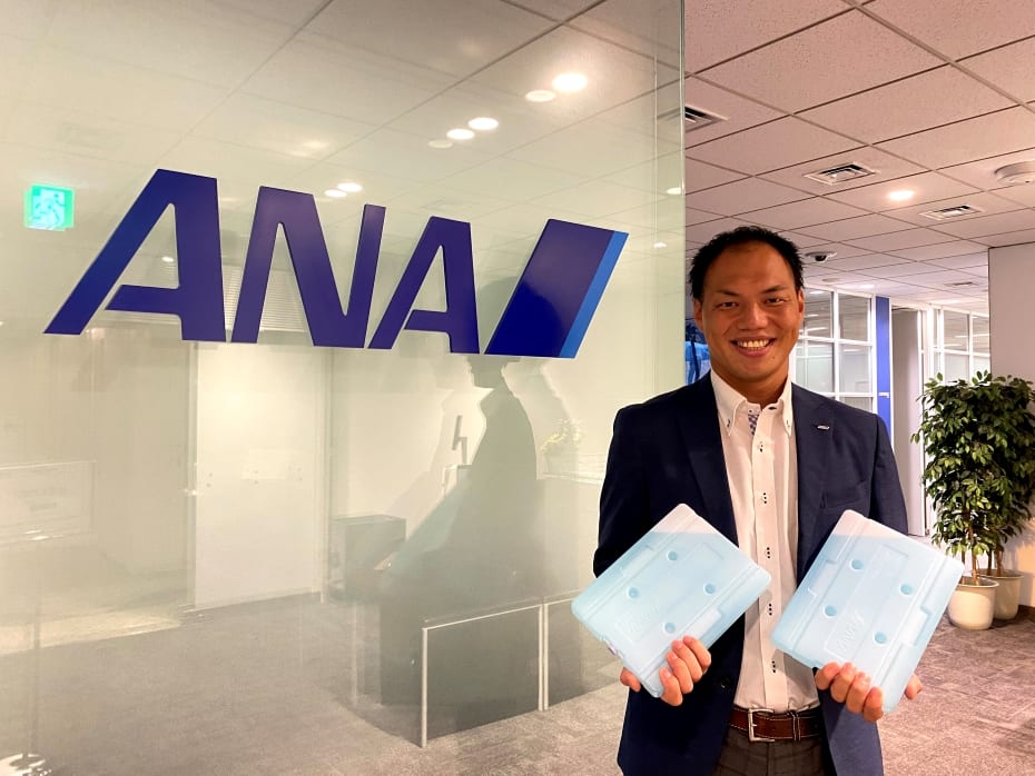To promote in-flight resource recycling, the first step was to identify plastic materials and disposable items. Among them, dry ice, which was carried on all flights, was very prominent due to the large amount of material. We had been relying on the cooling capacity of dry ice as a standard, and we had not been able to start examining it, but when we heard about the technological advances in ice pack, we started to investigate and research. Through our research, we found out that ice pack is a reusable product that does not waste limited resources, can reduce CO2 emissions from the ANA Group, and can significantly reduce costs compared to dry ice. We were able to create a positive image in all aspects, including other side effects, which led us to launch a project to introduce refrigerants.