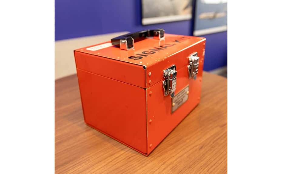 In both rooms, stools made by mechanics from discarded Boeing 787 cabin windows and wood pallets used to load air cargo, are placed. You can also see and touch an upcycled signal kit box in the room, which were used to store emergency signal lights on board.
