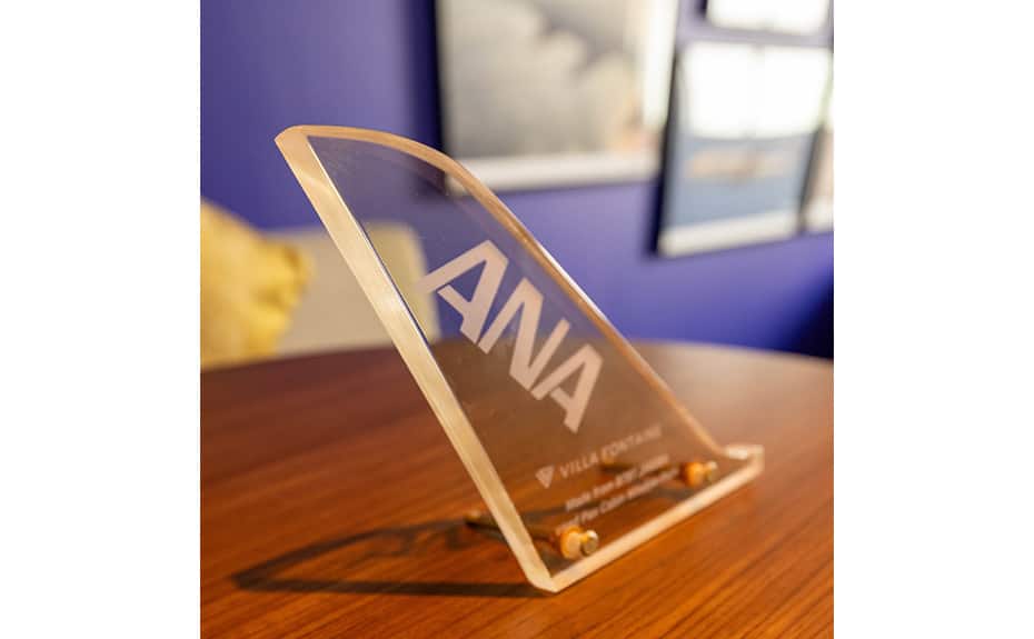 ANA Akindo has been developing the ANA ROOM, a concept room for experiencing the ANA brand, airplanes, and travel, since 2021, and it has been well received, especially by ANA fans and aviation enthusiasts. The ANA ROOM is designed to provide guests with a full experience of the ANA brand and airplanes, with a variety of contents owned by ANA Group companies, such as in-flight seats and amenities, scattered throughout the rooms. However, due to the rapid return of flights after COVID-19 disaster, we were faced with the challenge of being more limited in what we could procure for the room than before. In such a situation, with the full cooperation of the ANA Engineering and Maintenance Center, we established a scheme to procure discarded aircraft parts, and this time we were able to introduce ornaments and furniture planned and created by ANA mechanics into the ANA ROOM as new contents. In addition, we were able to collect old-advertisements and in-flight seats from ANA's past with the cooperation of various departments, enabling us to develop Villa Fontaine Haneda Airport with sufficient content for a more ANA brand experience.
