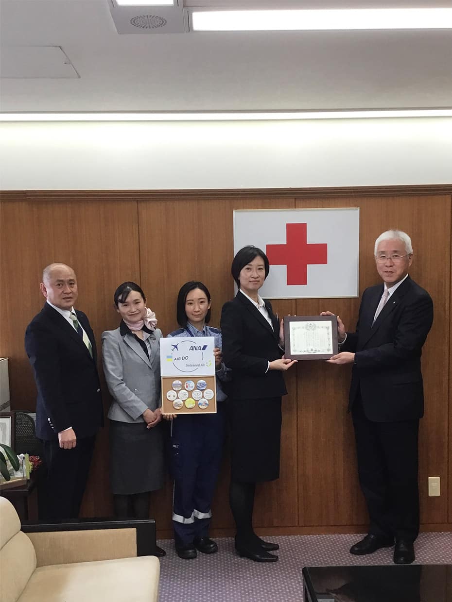 Receiving a certificate of commendation from the Japanese Red Cross Society