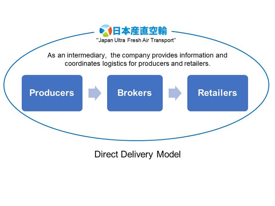 With conventional logistics, it takes approximately three to four days from the production site to the consumer's point of purchase. In order to change this trend to one that focuses on the value of freshness as the most important factor, the company plays the role of directly connecting producers and retailers in a system of logistics called the "Sanchoku Model" (Direct Delivery Model), which coordinates the entire logistics process from production area, wholesale, air transportation, ground transportation, retail, and consumer in a single system.
