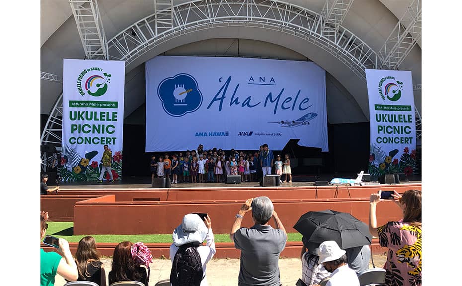 ʻAha Mele" means "music concert" in the Hawaiian language and represents ANA's desire to preserve Hawaiian culture and environment through music.