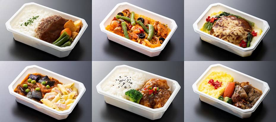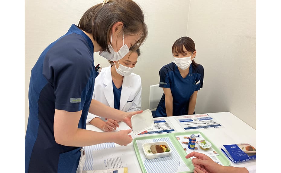 In-flight meals can be served simply by heating them up in the sky. Extended meals are prepared after the examination is completed, but the time is not predetermined. With in-flight meals that can be served simply by heating, patients can enjoy a warm meal when they take a break after examination. Moreover, ANA in-flight meals were suitable for serving at medical institutions, with colors designed for visibility in dimly lit aircraft, moderate volume with necessary nutrients in a compact package, and a familiar taste with low salt content from soup stock and spices.Based on these characteristics, doctors and dietitians at the Osaka International Cancer Institute discussed the matter and decided to adopt it as one of the extended meal menu items.
