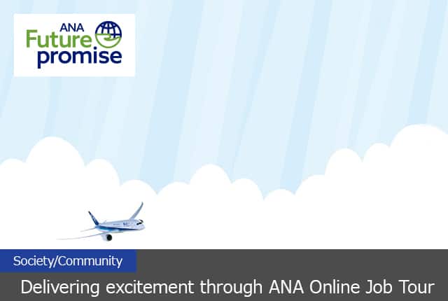 In February 2024, an online job tour was held connecting ANA Blue Base, the ANA Group's comprehensive training center, with two elementary schools in Okinawa Prefecture.