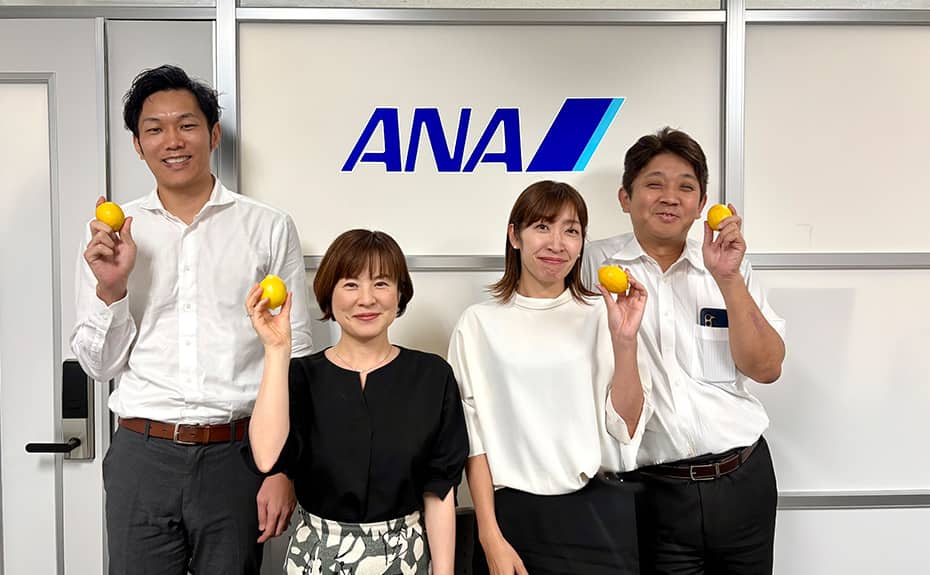 This project aims to help ANA Akindo Co., Ltd. (hereinafter "ANA Akindo") co-create new value with local communities by promoting regional revitalization through farming. Its Hiroshima Branch focuses on locally grown Hiroshima lemons and organizes product development and lemon-picking tours in collaboration with local farmers. The company's goal is to serve as a bridge between local agriculture and consumers by leveraging the ANA Group's unique communication power, while taking on the challenge of addressing various social issues. We will continue to help develop regions with lasting viability centered on food and tourism through the ANA Farm Project.