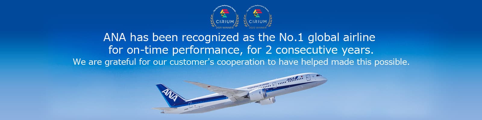 ANA was given Cirium's On-Time Performance Award based on flight performance in 2023.