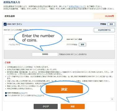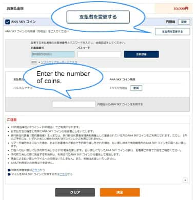 ANA SKY COINS can be used in units of 10 coins (equivalent to JPY 10).