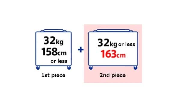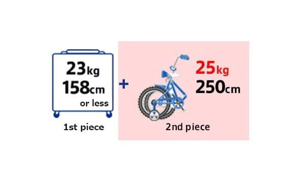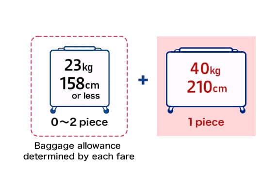 20,000 yen (Baggage Allowance determined by each fare + 1 piece) + 20,000 yen (Overweight) + 20,000 yen (Oversize)