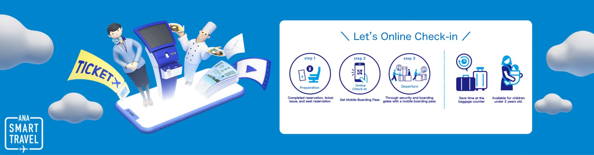 Online check-in is also available for Japan domestic flights that are ticketed as part of an international flight ticket. Please go to International Flights - Online Check-in on the ANA website to do so. (Online check-in may be unavailable in certain cases. In this instance, please check in at an airport counter or using a self-service check-in machine.)